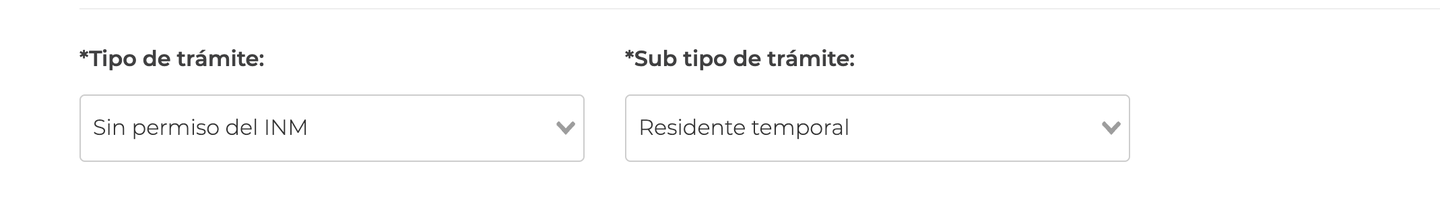 手续种类选择'Sin permiso del INM' ,然后选择'Residente temporal' 或者 'Residente permanente' (如果满足RP条件)