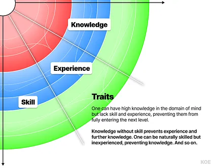 Within each phase, there is a threshold of knowledge, experience, and skill that must be acquired before the next level reveals itself to you. While phases represent vertical development, traits represent horizontal development, or navigating the unknown until you have discovered enough to reach the next phase.
