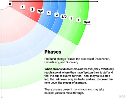 Within each level, there are 3 phases of development that one must go through to reach the next level. Phases represent vertical development, moving up a level or regressing back down.